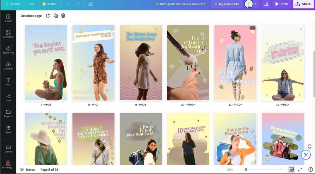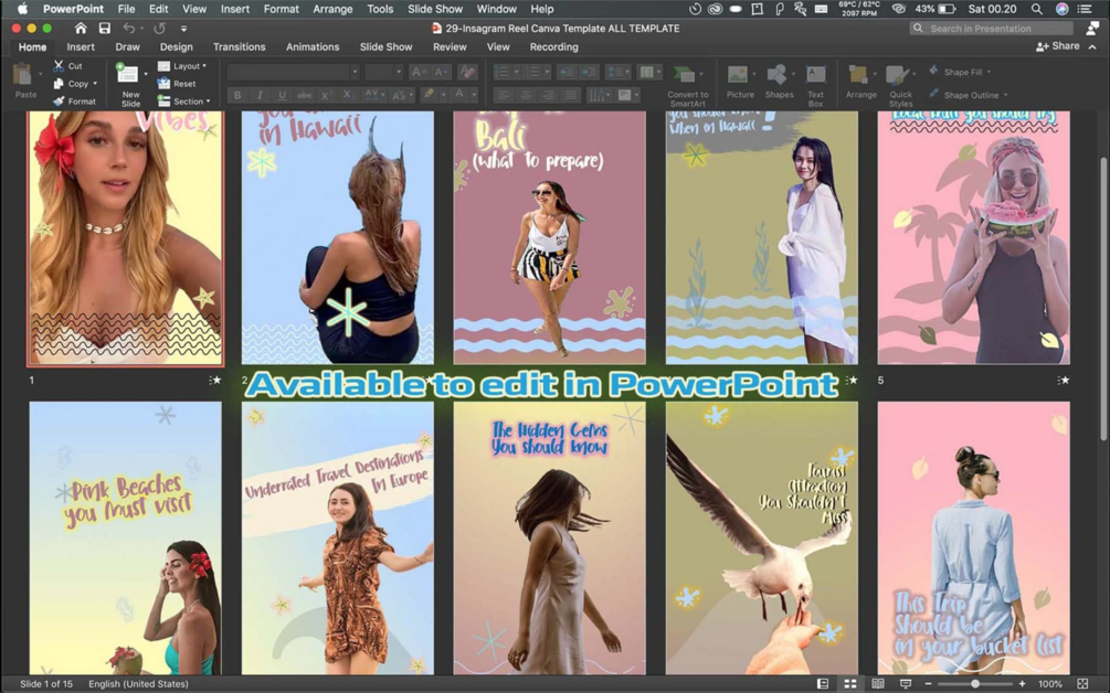 29 Editable Instagram Reels Template in Canva and Powerpoint specifically for content creator in Travelling niches such as Nature, Beaches